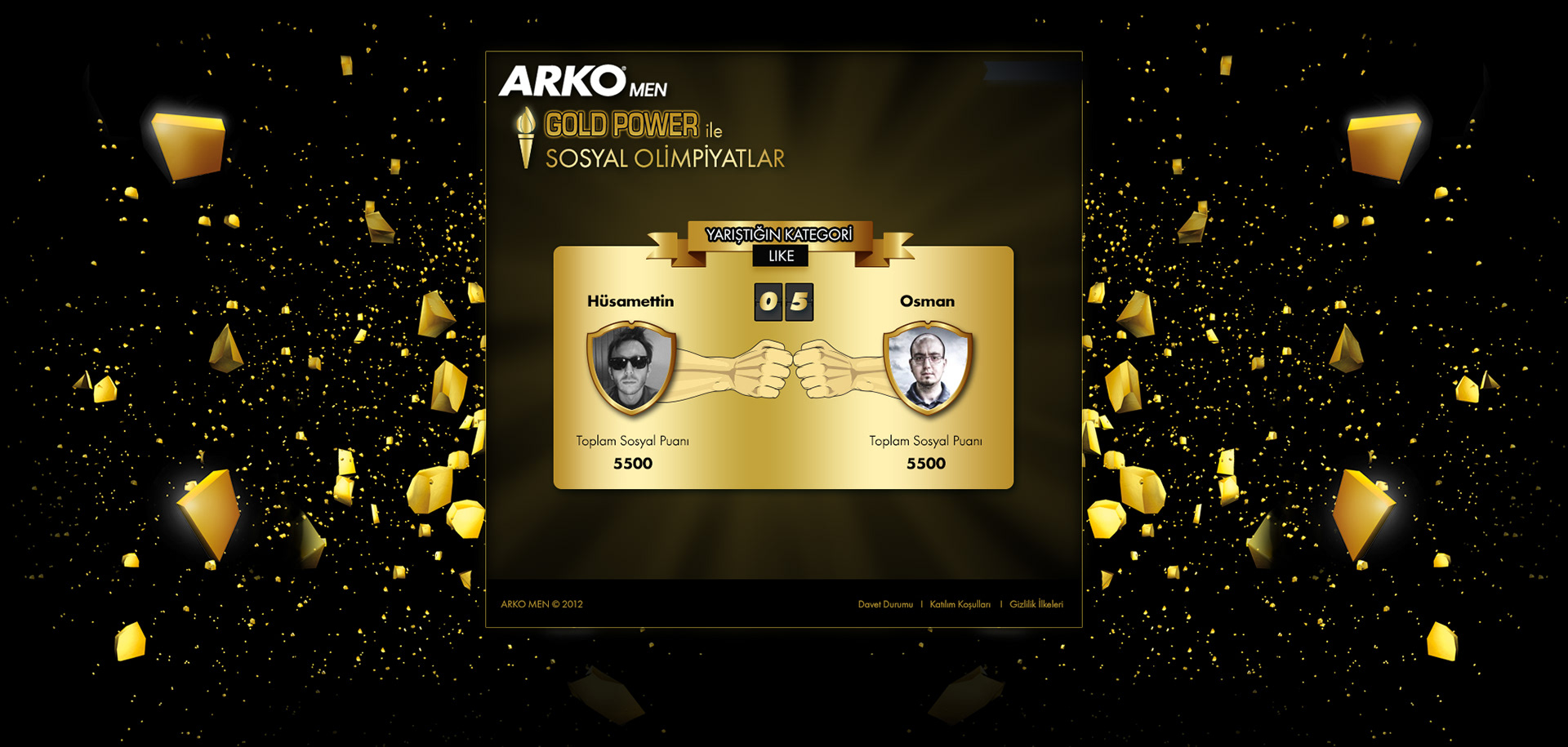 Arko Men Gold Power Social Olympics is a Facebook game created for one of Turkey's biggest men personal care brand Arko Men. Arko Men's new cologne Gold Power was promising power to its users so we created a game which checked their social powers. Users competed friends using their social powers such as numbers of photos, comments and likes they received or how many things they posted on Facebook.