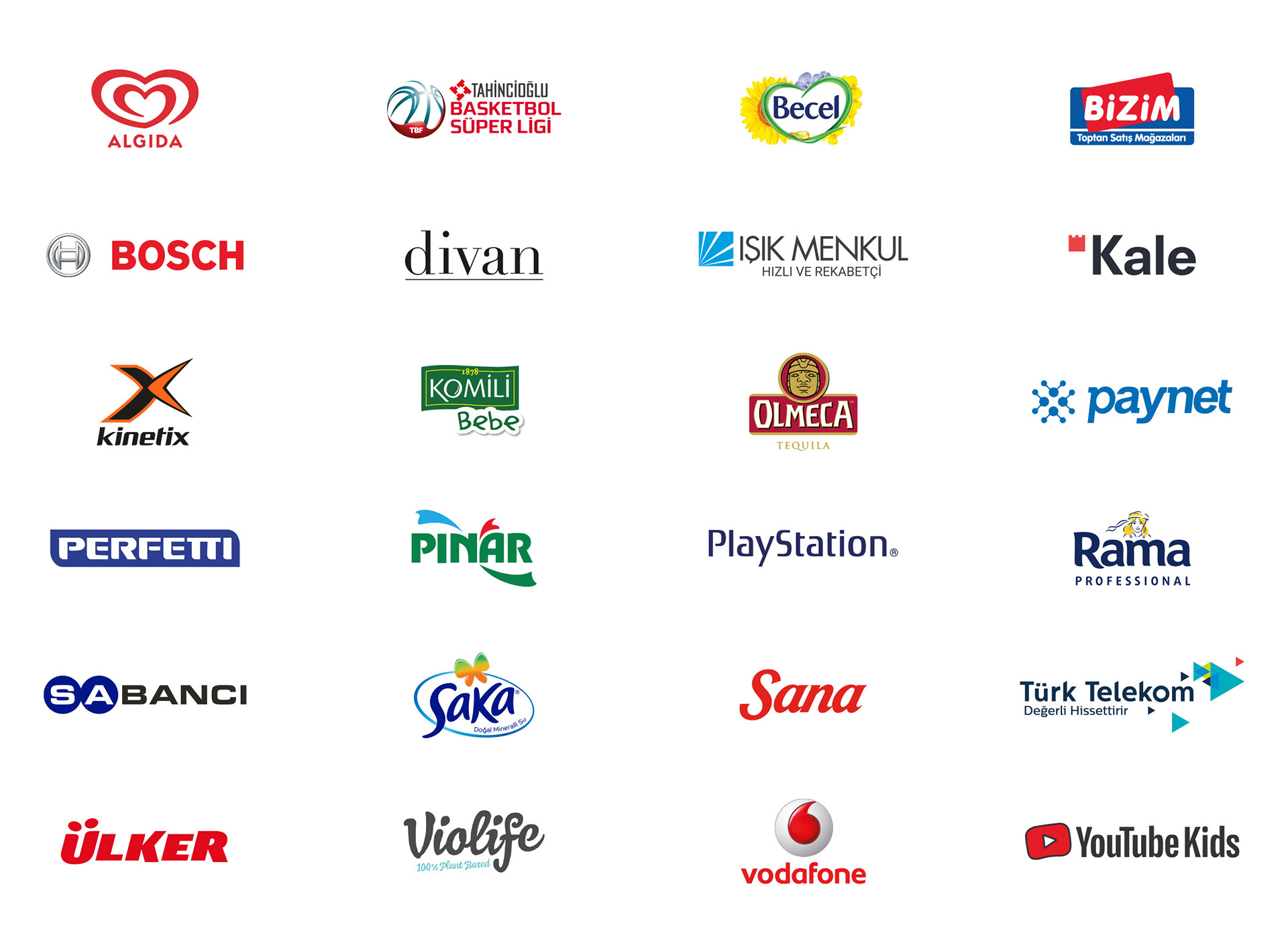 CLIENTS: Bizim Lokanta, Bizim Toptan, Chupa Chups, Kinetix, Lego, Lumberjack, McVitie's, Mentos, Perfetti, Pınar, Pınar Labne, Pınar Protein, pladis global, Sabancı Holding, Saka Su, Seç Market, Türkiye Basketbol Federasyonu (TBF), Ülker, Ülker Albeni, Ülker Biskrem, Ülker Çokokrem, Ülker Eksper, Ülker Hanımeller, Ülker Krispi, Ülker Metro, Ülker Piko5, Vivident, Yıldız Holding